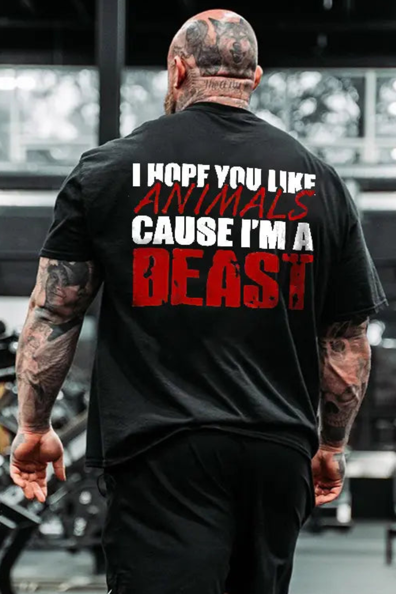I Hope You Like Animals Cuse I'm A Beast Printed Casual Men's T-shirt