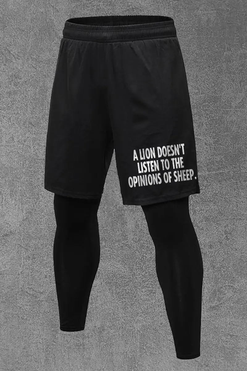 A Lion Doesn't Listen To The Opinions Of Sheep Printed Men's All-In-One Fitness Leggings