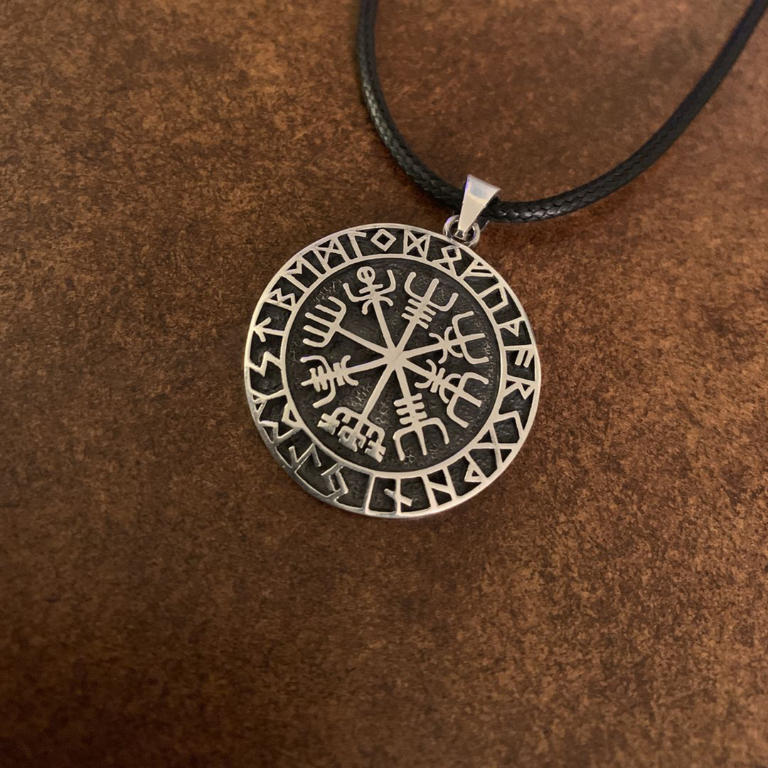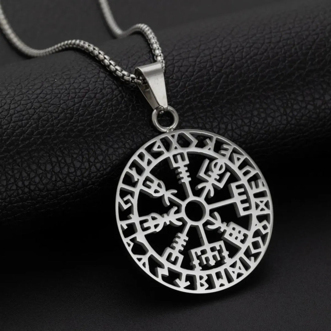 Viking Compass Pendant Vintage Rune Men's Necklace