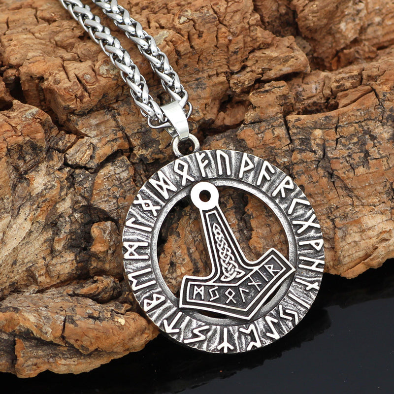 Viking Vintage Pirate Rune Hammer Pendant Necklace
