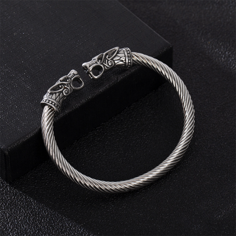 Nordic Viking Odin Faucet Solid Two Color Open Men's Bracelet