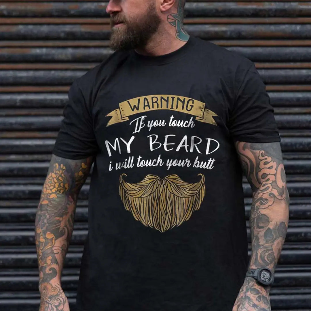 Viking Warning If You Touch My Beard I Will Touch Your Butt Printed Men's T-shirt