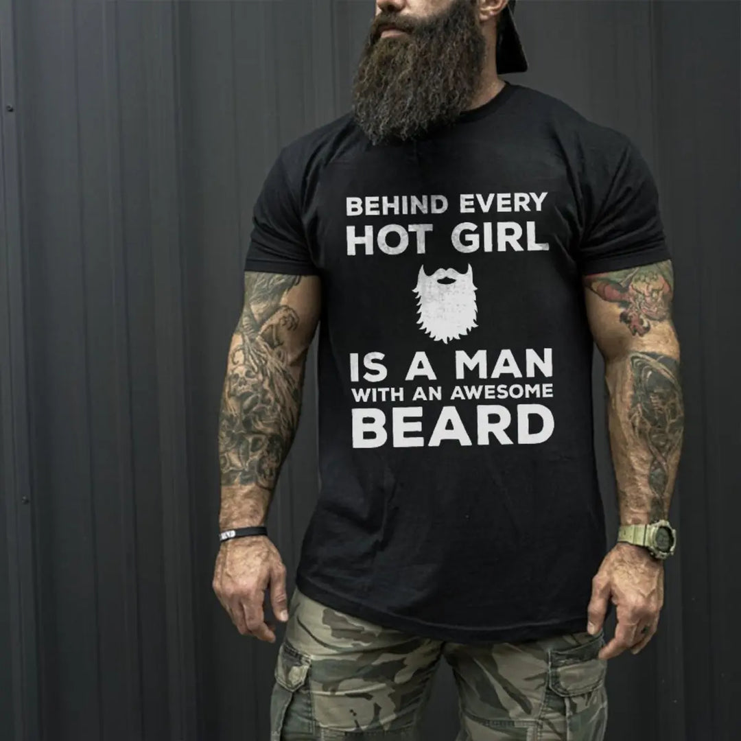 Viking Behind Every Hot Girl Is A Man With An Awesome Beard Printed Men's T-shirt