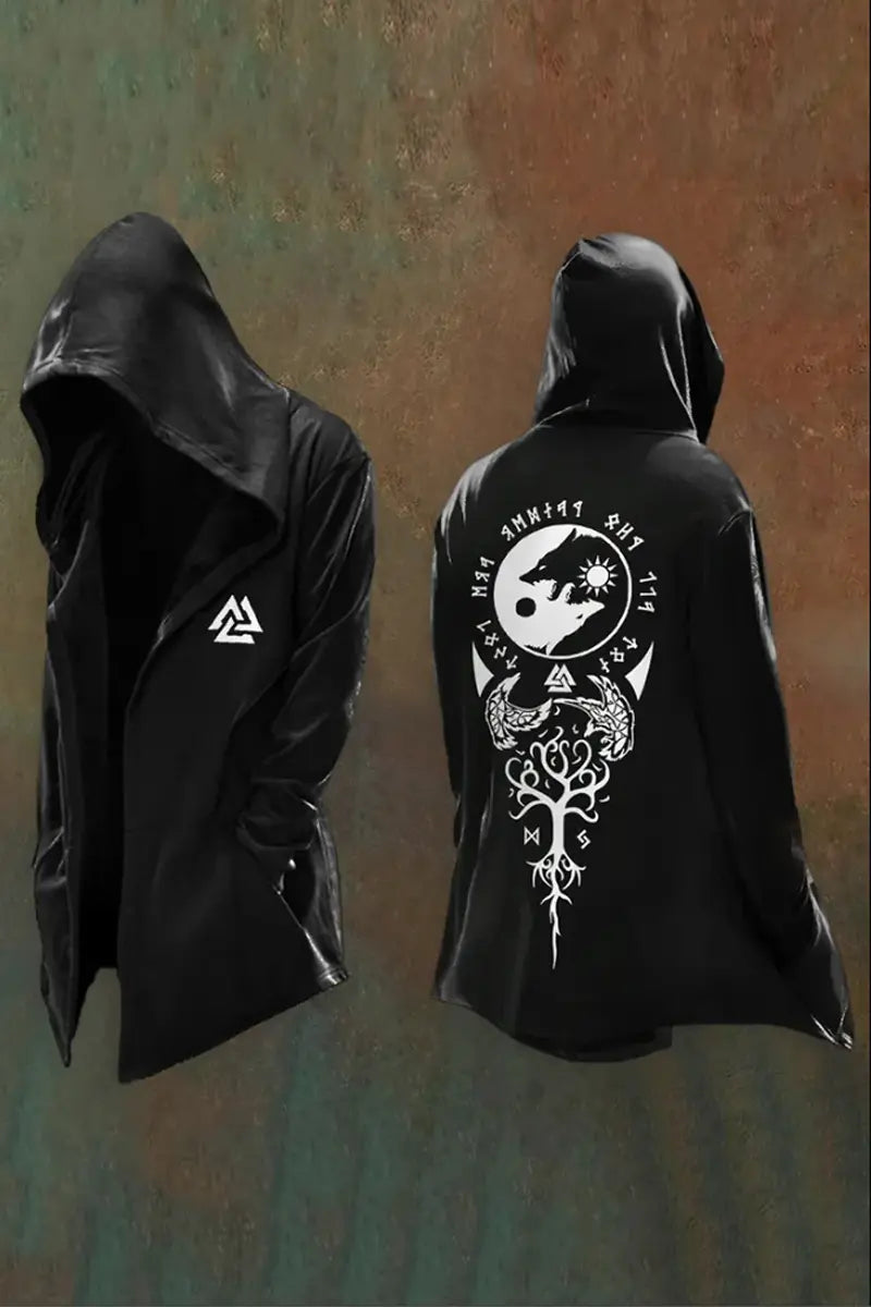 Vintage Yin-Yang Symbol Printed Art Men's Hooded Jacket