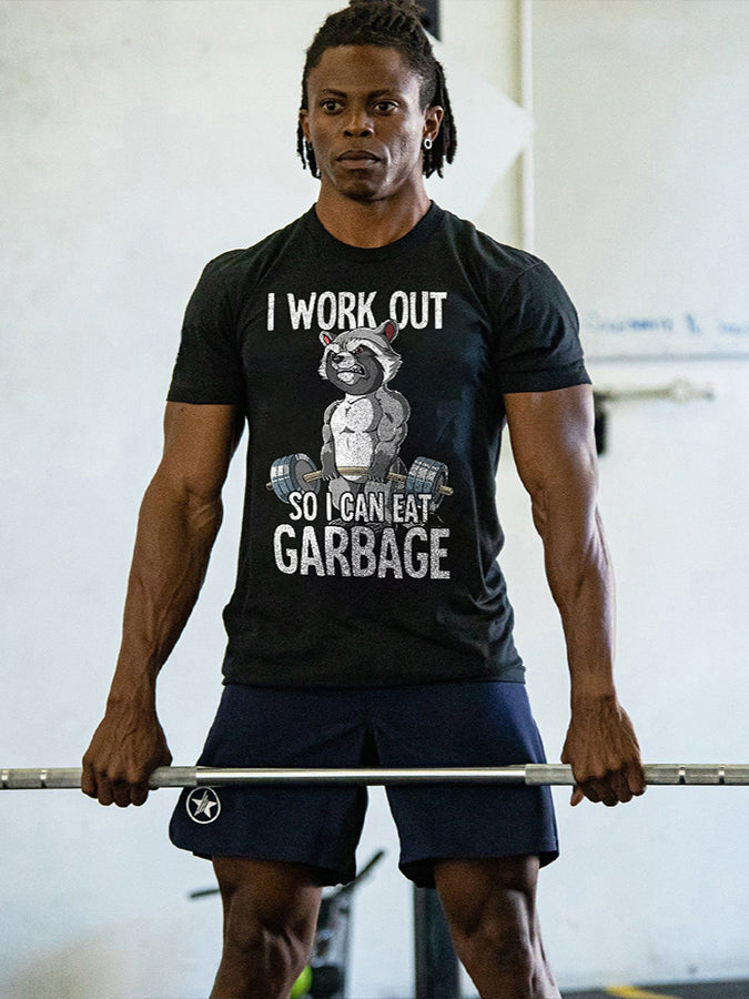 I Work Out So I Can Eat Garbage Printed Men's T-shirt