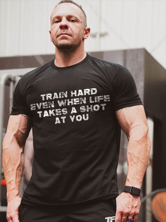 Train Hard Even When Life Takes A Shot At You Printed Men's T-shirt