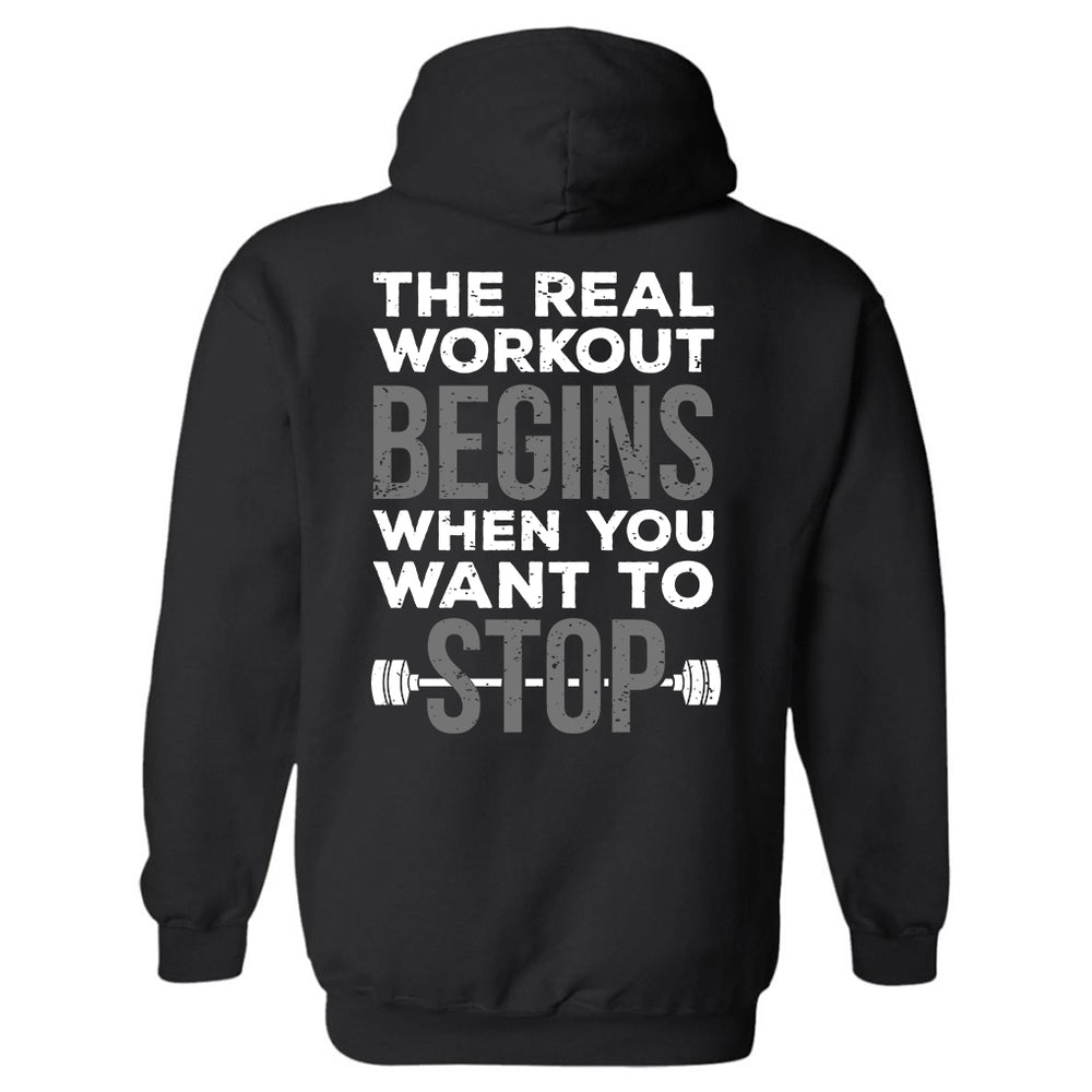 The Real Workout Begins When You Want To Stop Printed Men's Hoodie