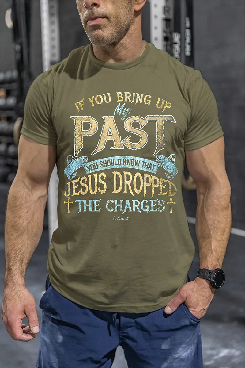If You Bring Up My Past You Should Know That Jesus Dropped The Charges Printed Men's T-shirt