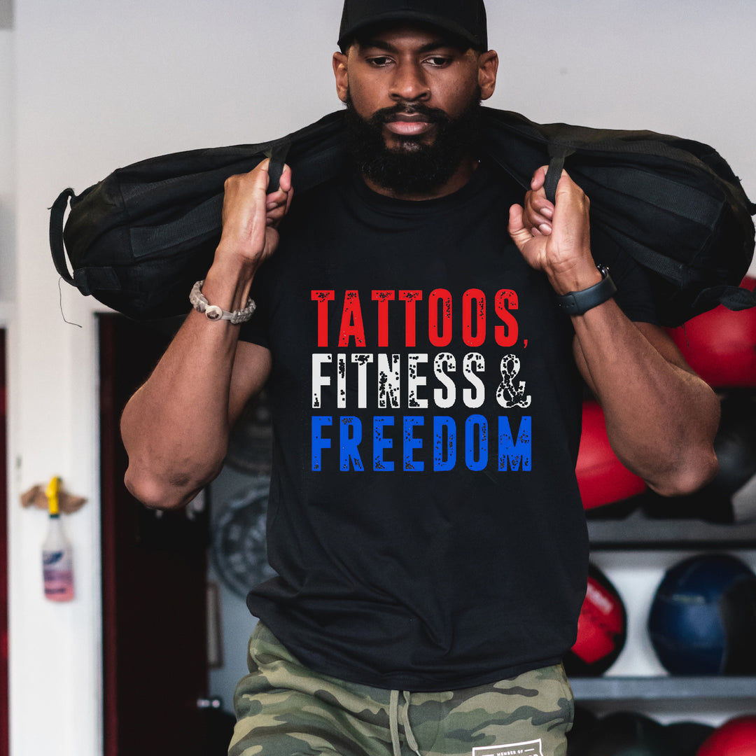 Tattoos Fitness & Freedom Print Men's T-shirt