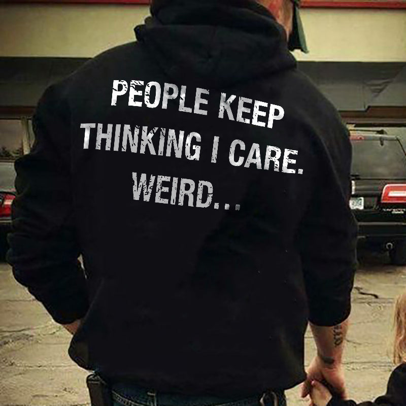 People Keep Thinking I Care Weird Letter Printed Classic Hoodie
