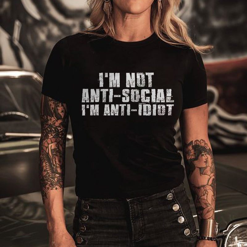I'm Not Anti-Social I'm Anti-Idiot Printed Women 's T-shirt