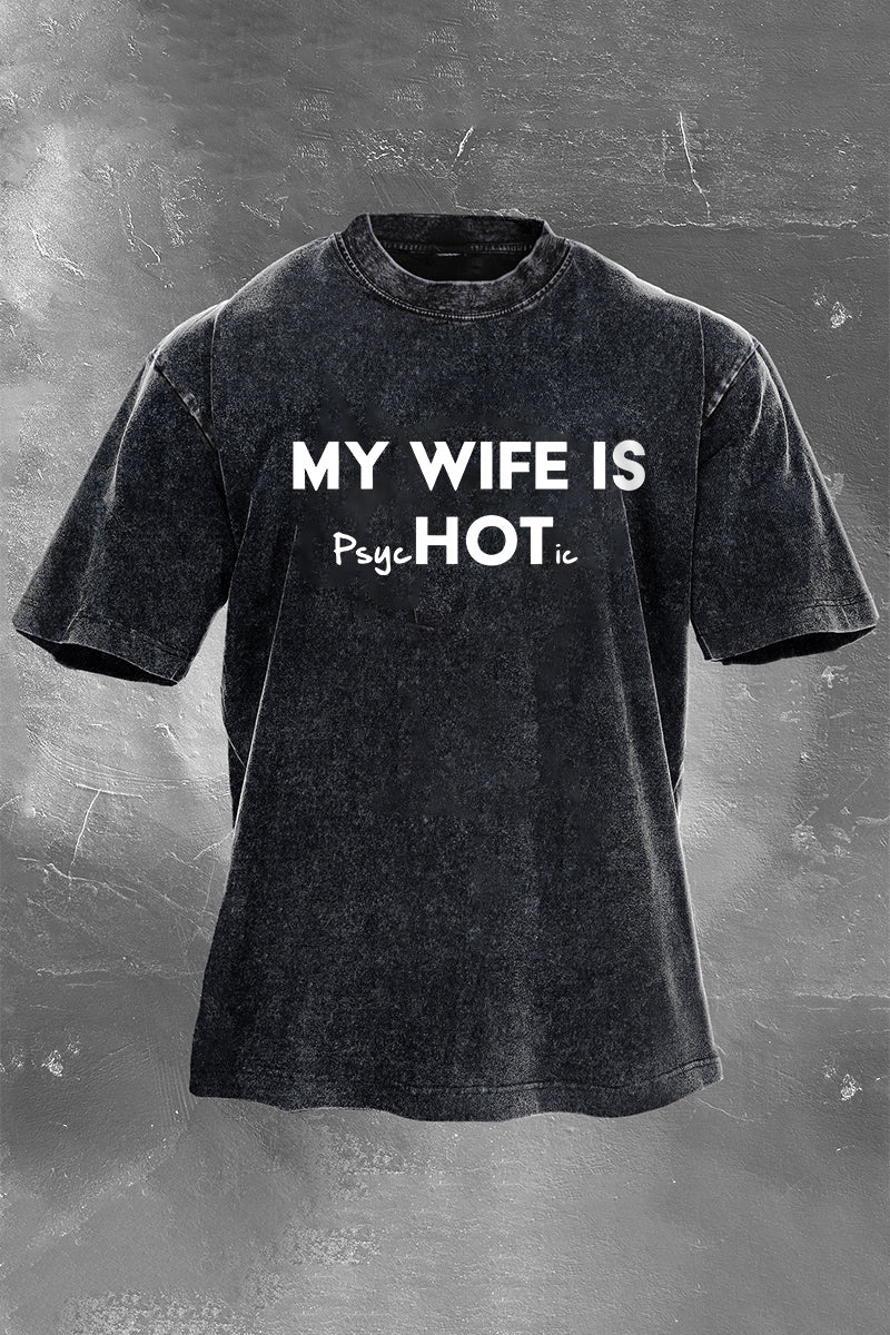 My Wife Is Hot Printed Men's Washed T-Shirt