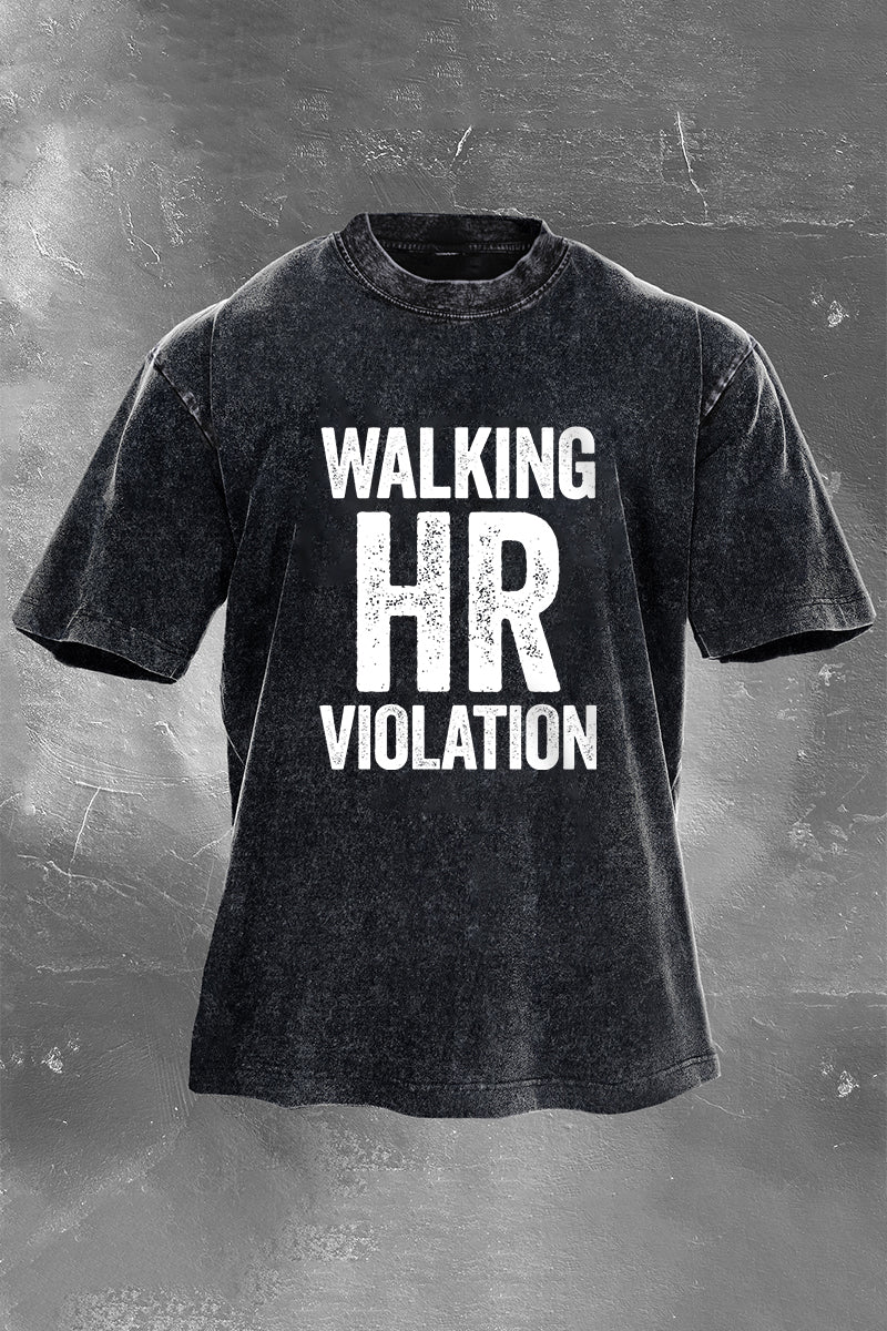 Walking Hr Violation Printed Men's Washed T-Shirt
