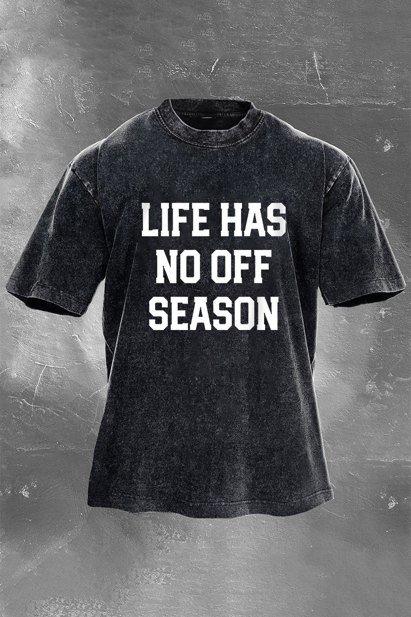 Life Has No Off Season Printed Men's Washed T-Shirt