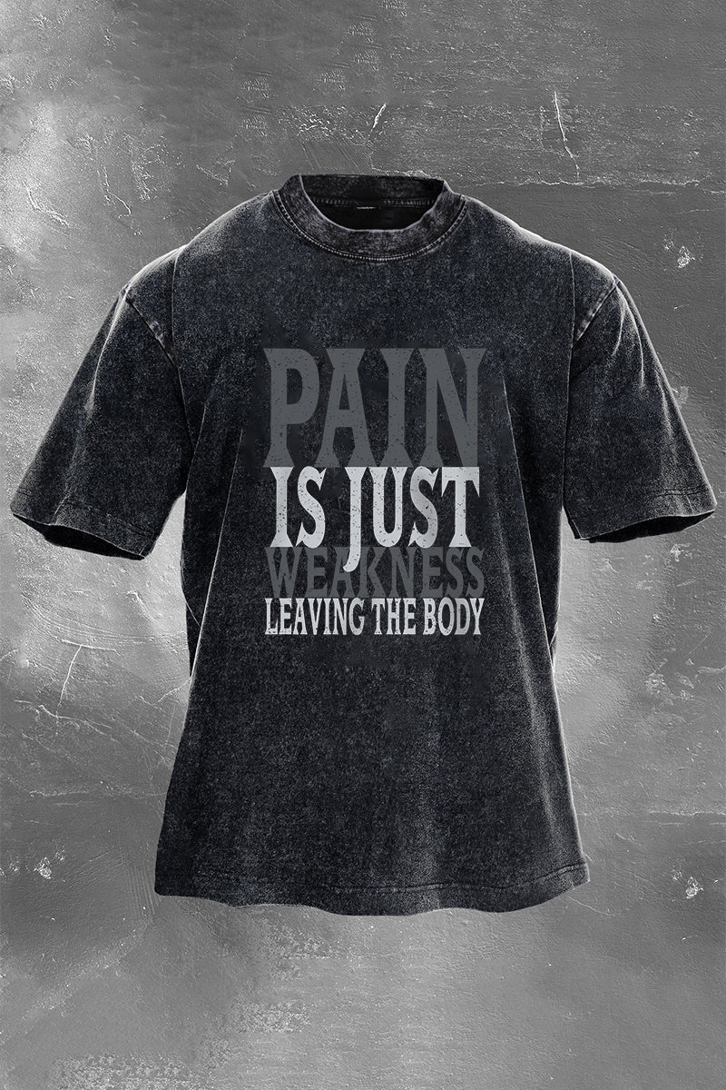 Pain Is Just Weakness Leaving The Body Printed Men's Washed T-Shirt