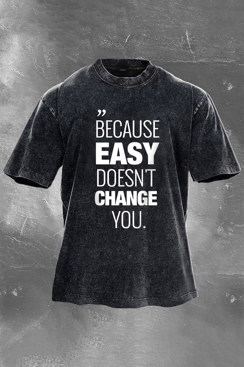 Because Easy Doesn't Change You Printed Men's Washed T-Shirt