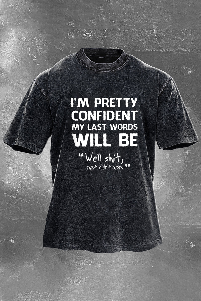 I'm Pretty Confident My Last Words "Will Be Well Shit, That Didn't Work" Printed Men's Washed T-Shirt