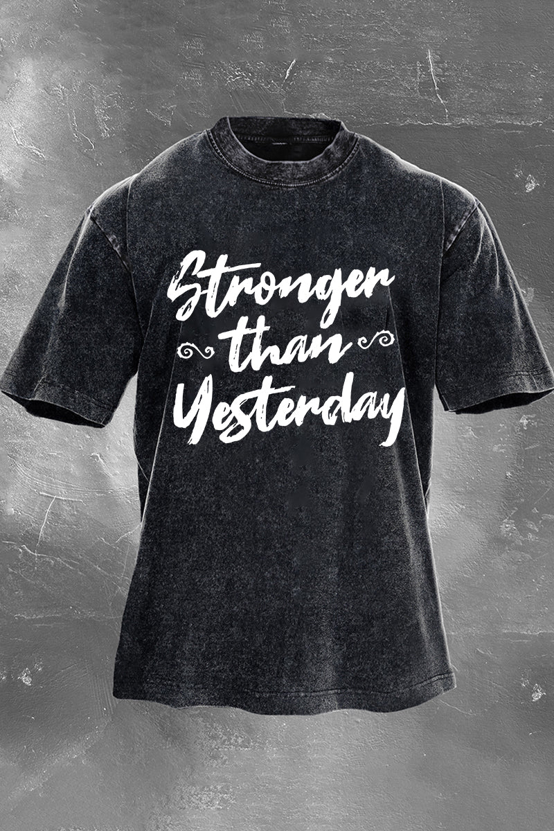 Stronger Than Yesterday Printed Men's Washed T-Shirt