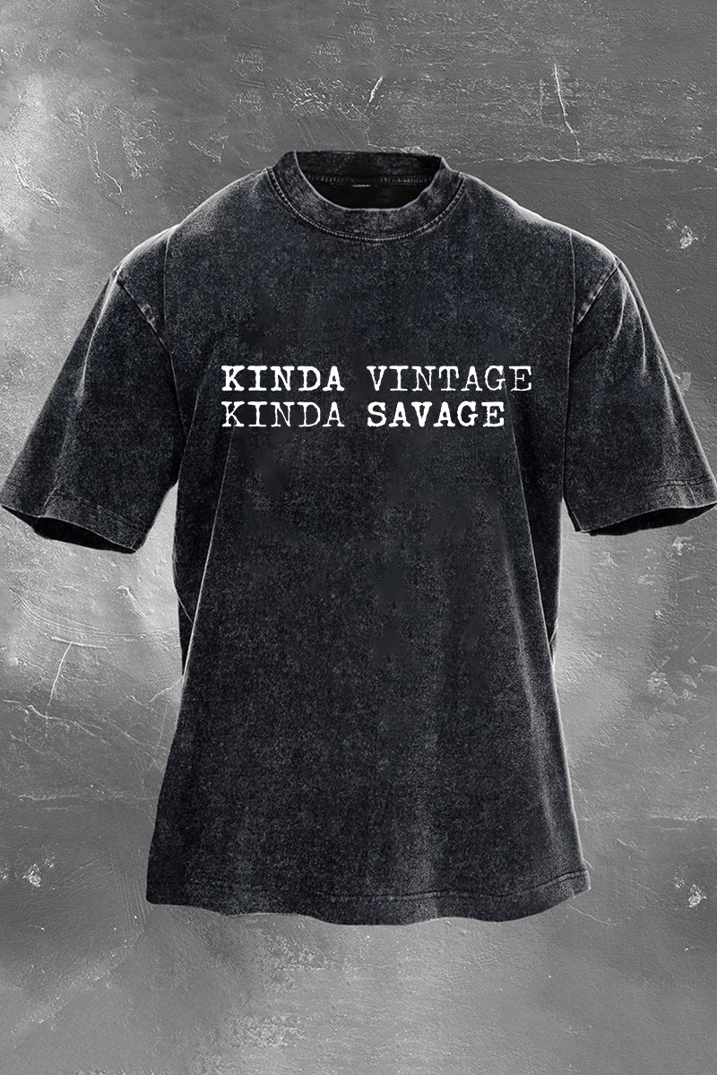 Kinda Vintage Kinda Savage Printed Men's Washed T-Shirt