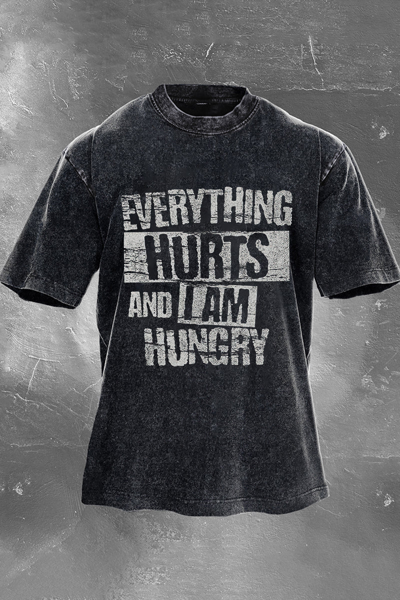 Everything Hurts And I Am Hungry Printed Men's Washed T-Shirt