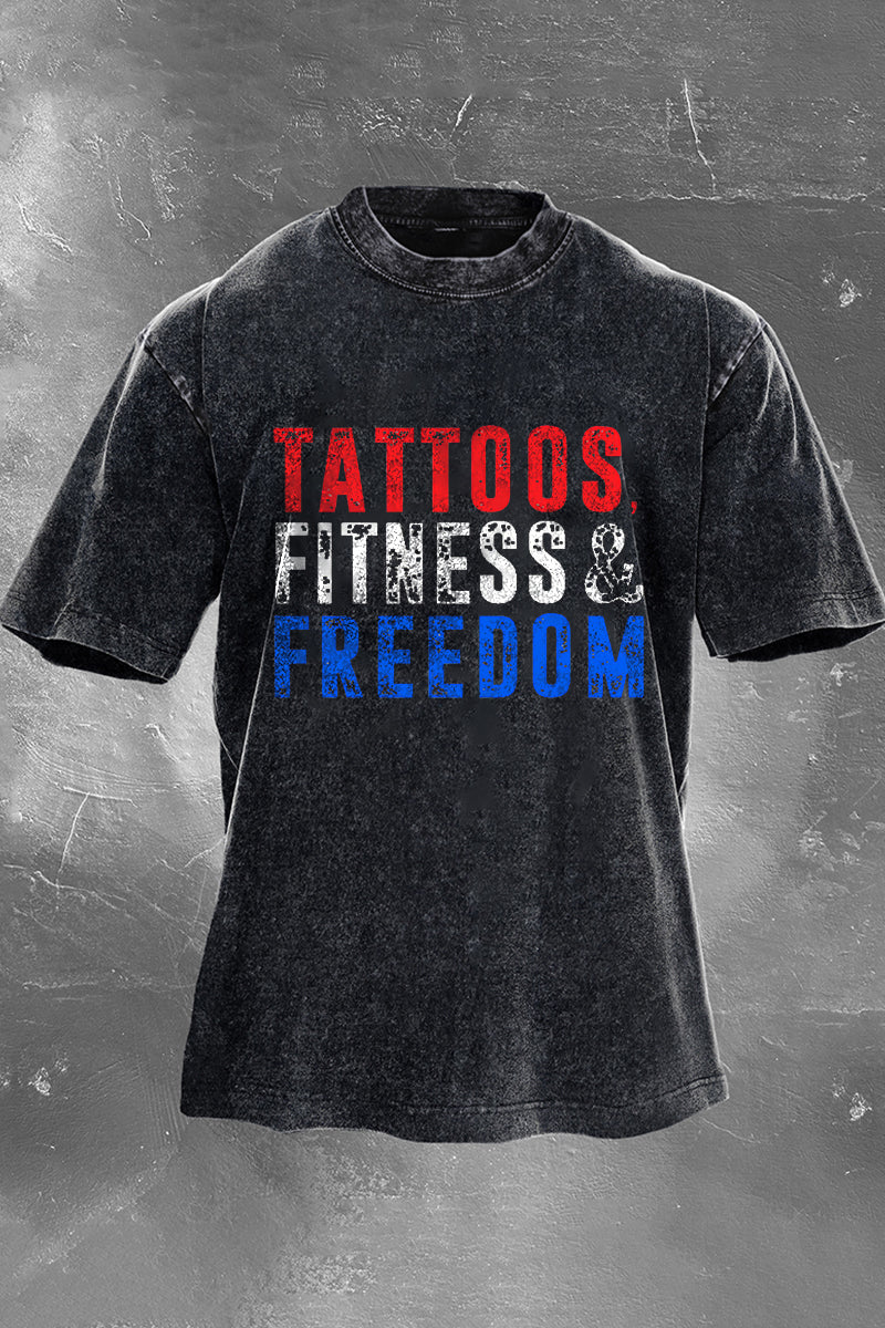 Tattoos, Fitness & Freedom Printed Men's Washed T-Shirt
