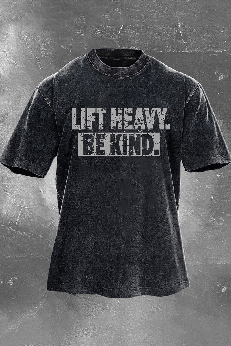 Lift Heavy. Be Kind Printed Men's Washed T-Shirt
