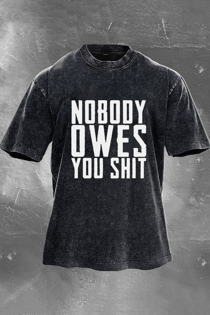 Nobody Owes You Shit Printed Men's Washed T-Shirt
