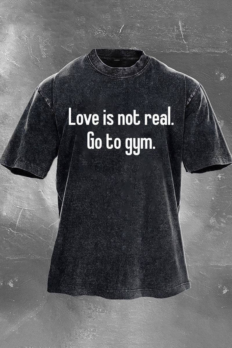 Love Is Not Real. Go To Gym Printed Men's Washed T-Shirt