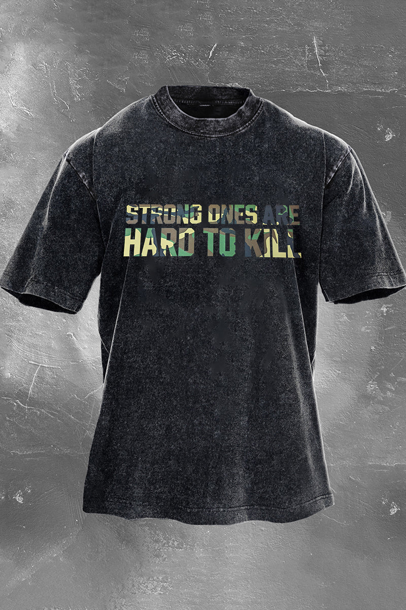 Strong Ones Are Hard To Kill Printed Men's Washed T-Shirt