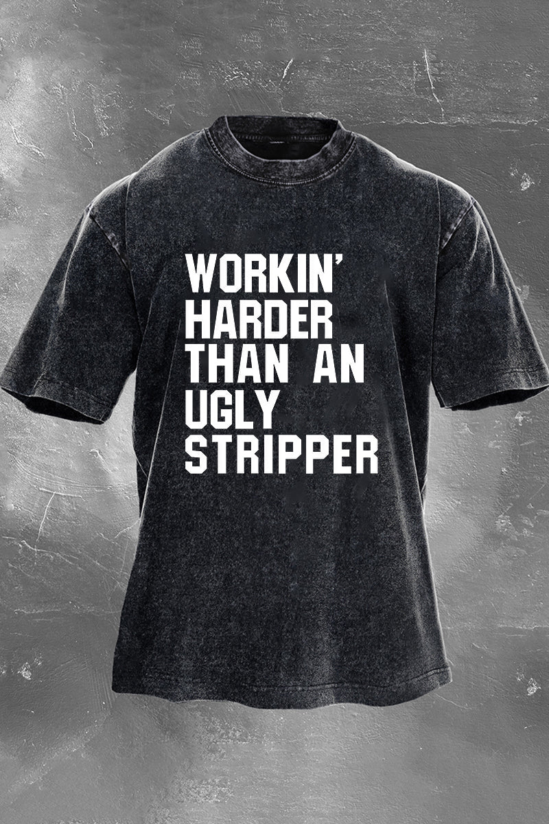 Workin' Harder Than An Ugly Stripper Printed Men's Washed T-Shirt