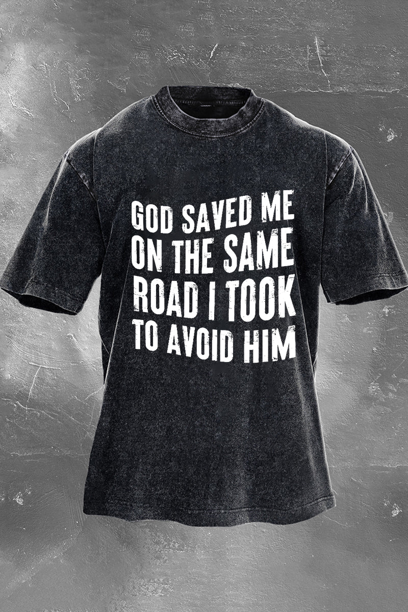 God Saved Me On The Same Road I Tool To Avoid Him Printed Men's Washed T-Shirt