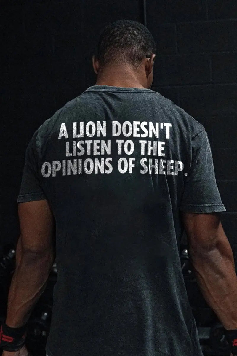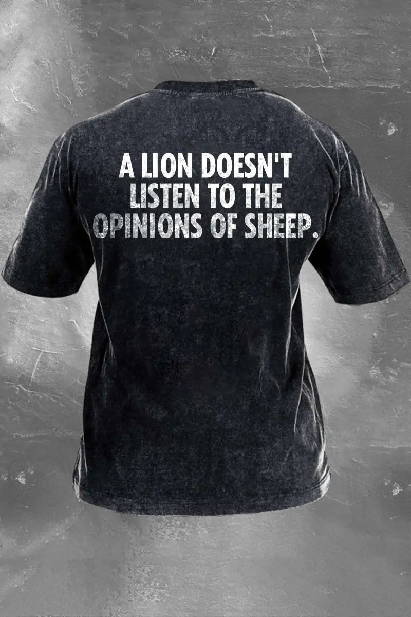 A Lion Doesn't Listen To The Opinion Of Sheep Printed Men's Washed T-Shirt