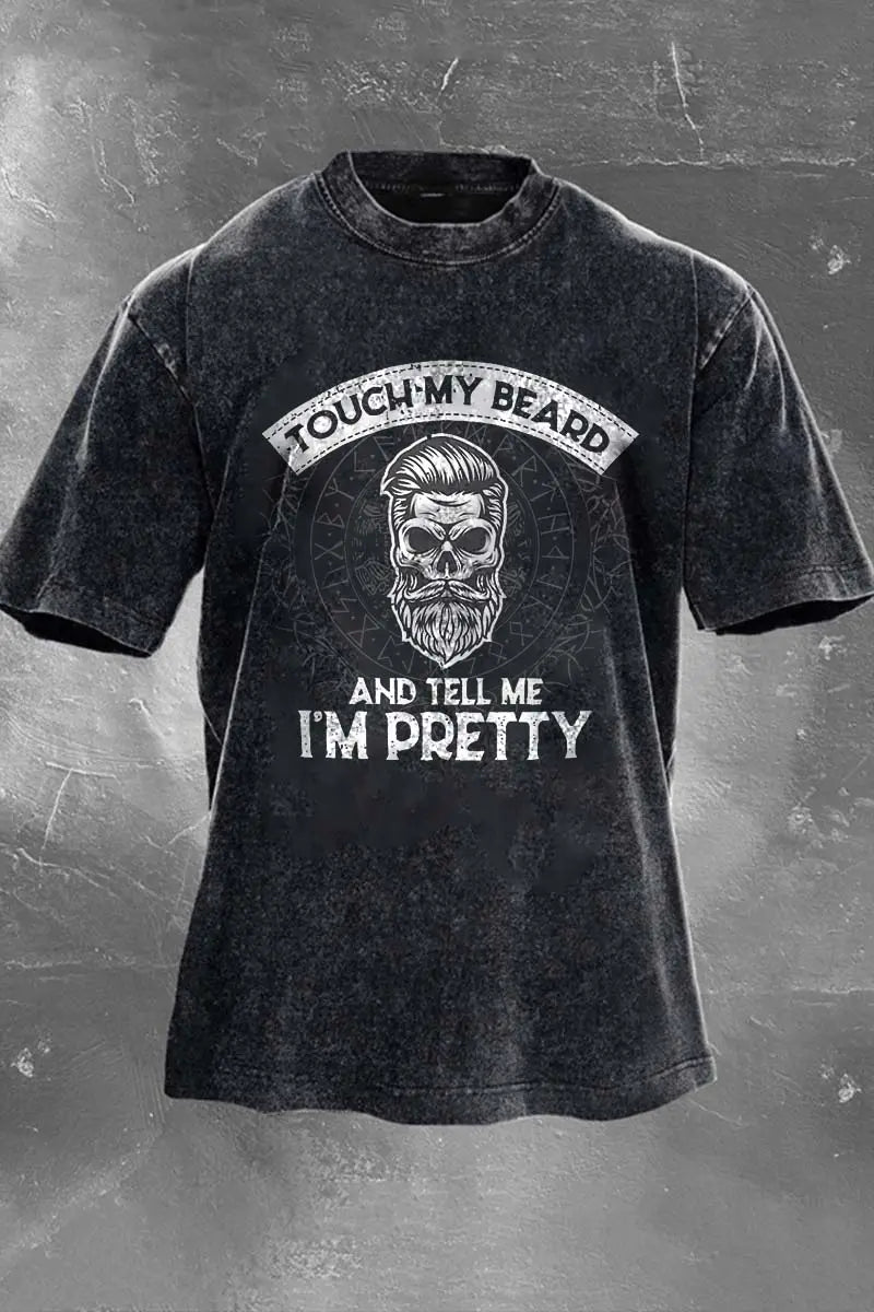 Viking Touch My Beard And Tell Me I'm Pretty Printed Men's Washed T-Shirt