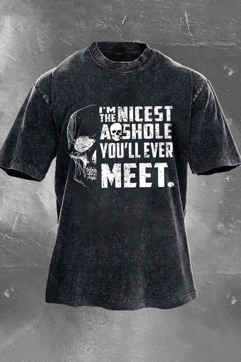 Viking I'm The Nicest Asshole You'll Ever Meet Printed Men's Washed T-Shirt