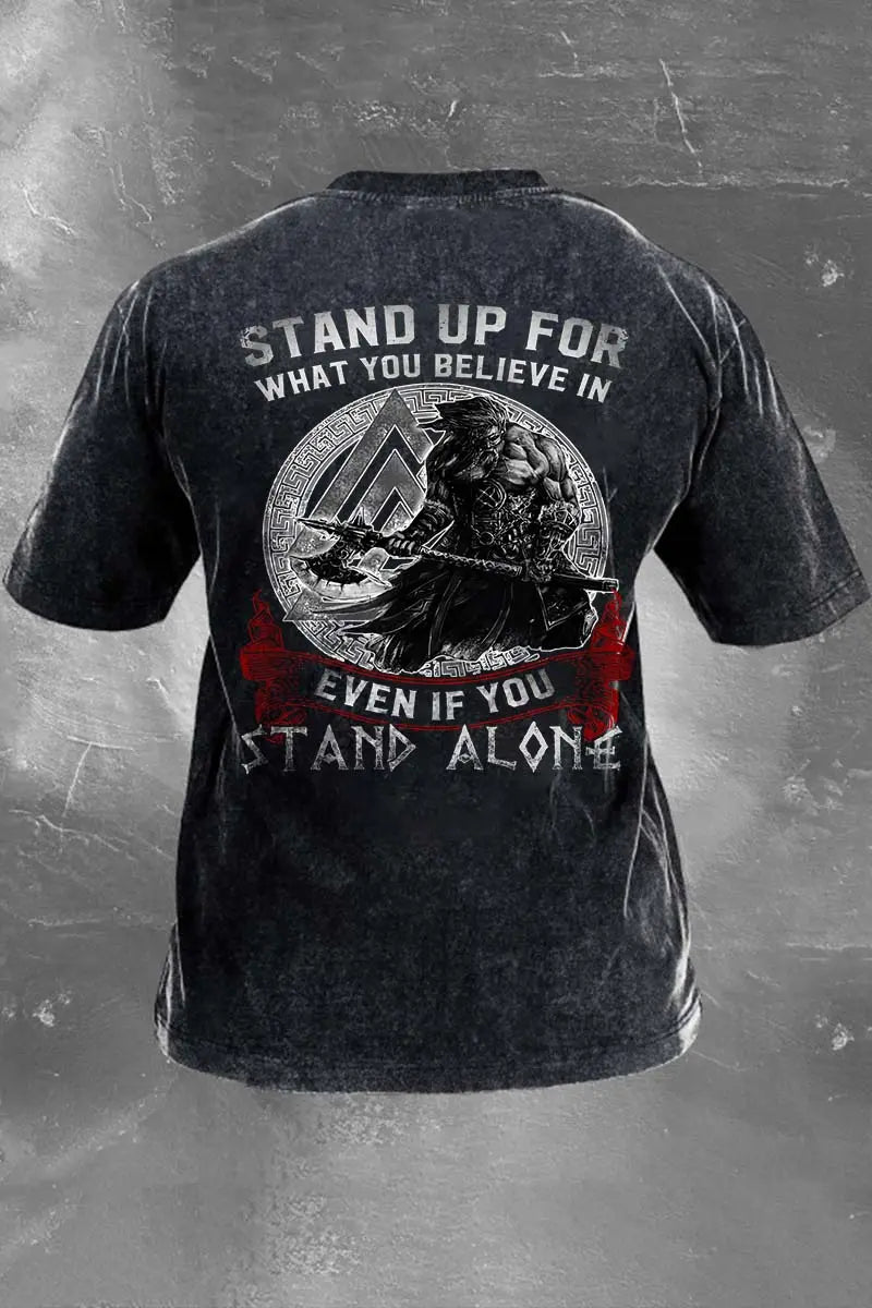 Viking Stand Up For What You Believe In Printed Men's Washed T-Shirt