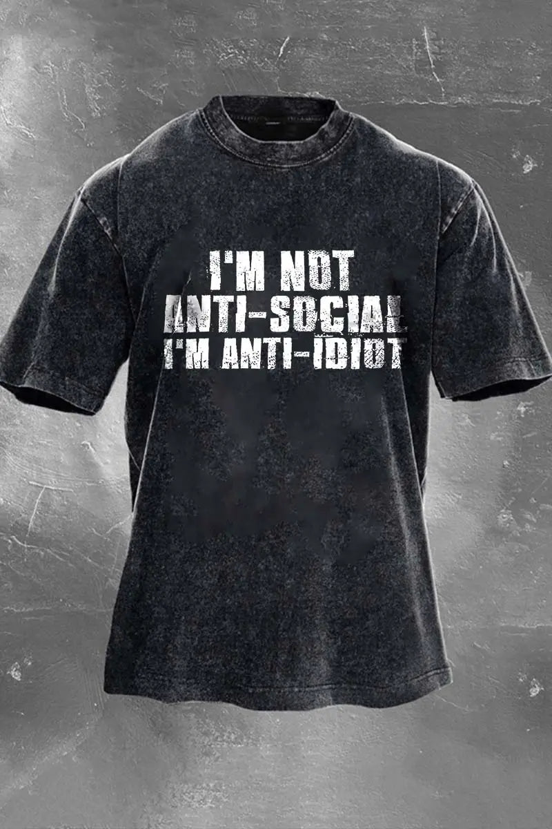Viking I'm Not Anti-social I'm Anti-Idiot Printed Men's Washed T-Shirt