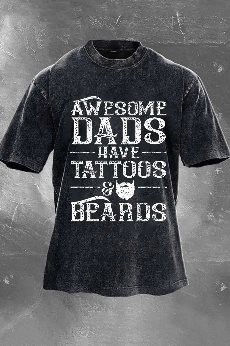 Viking Awesome Dads Have Tattoos & Beards Printed Men's Washed T-Shirt