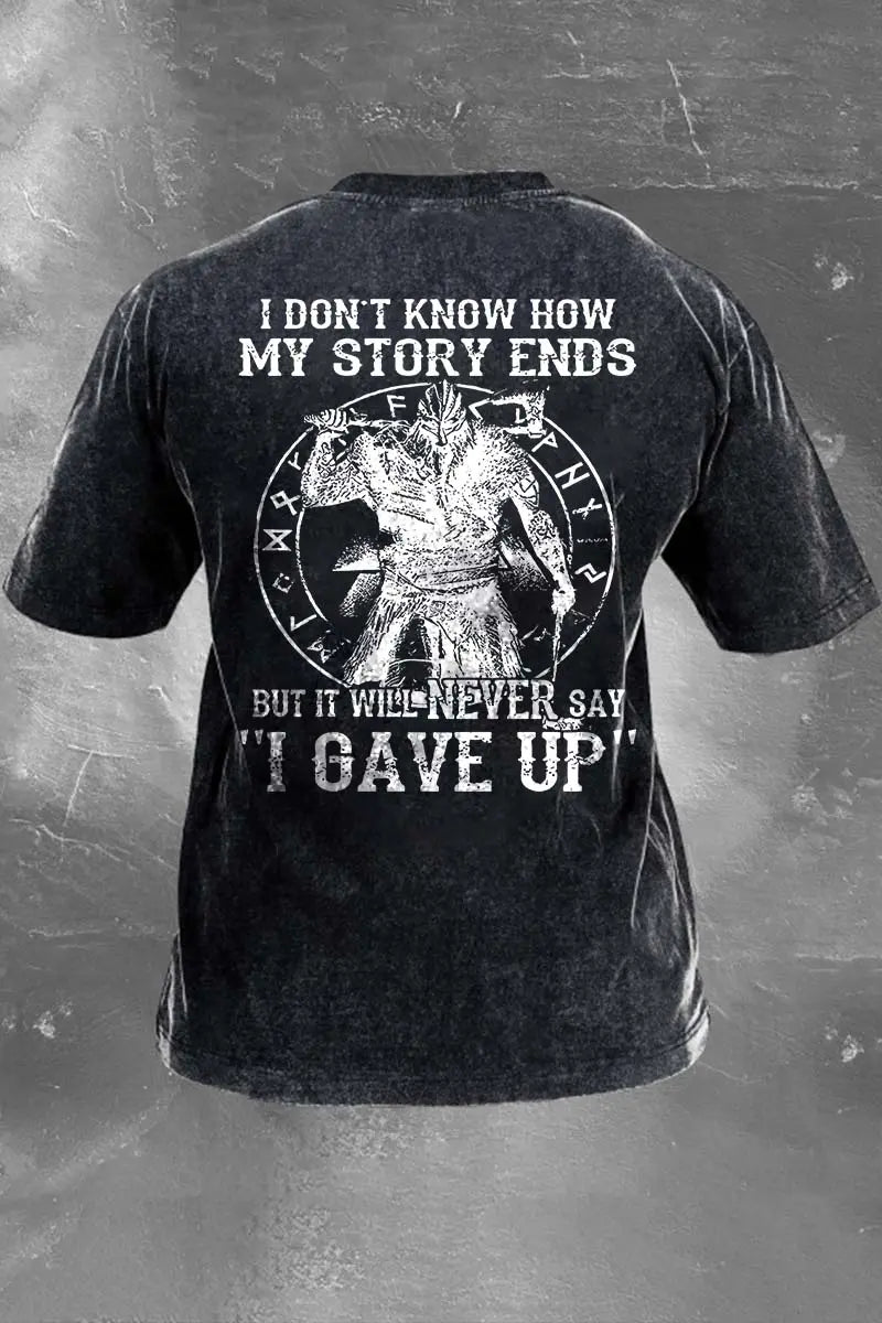 Viking I Don't Know How My Story Ends Printed Men's Washed T-Shirt
