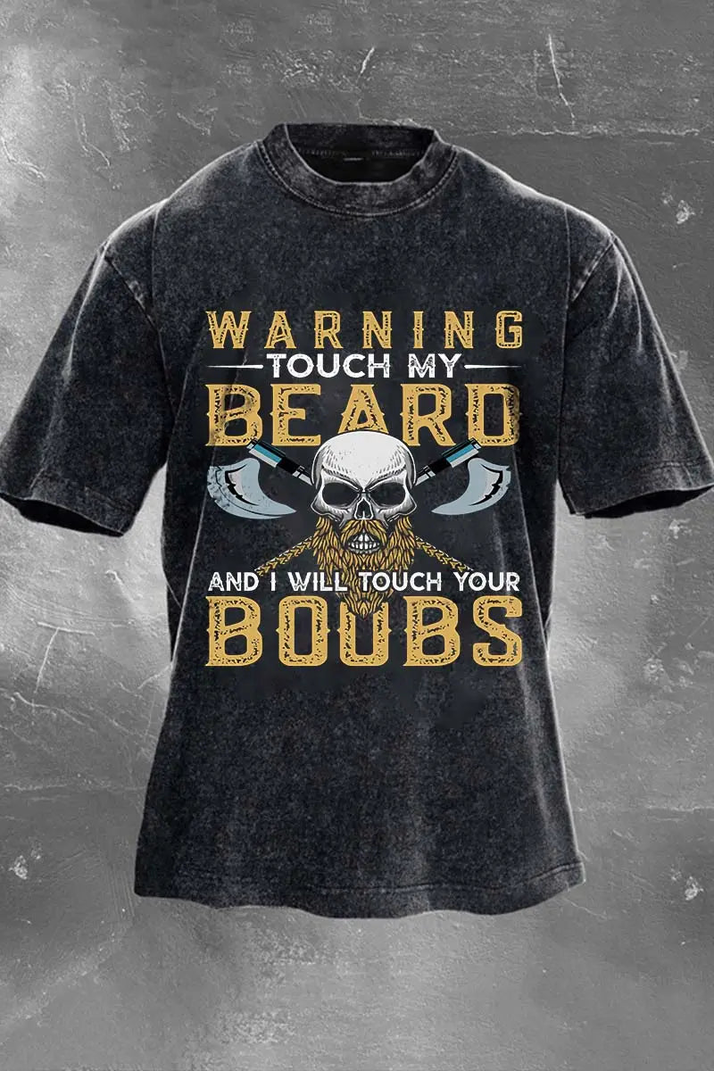 Viking Warning Touch My Beard And I Will Touch Your Boobs Printed Men's Washed T-Shirt