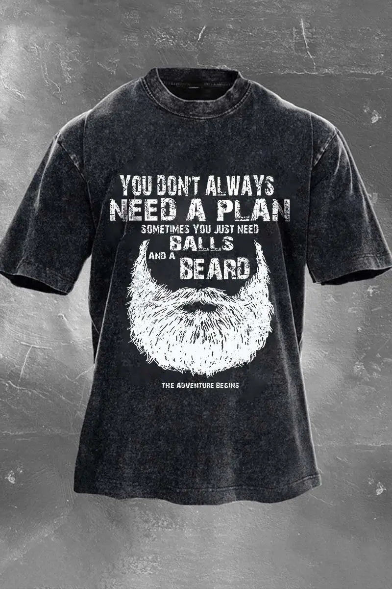 Viking You Don't Always Need A Plan Printed Men's Washed T-Shirt