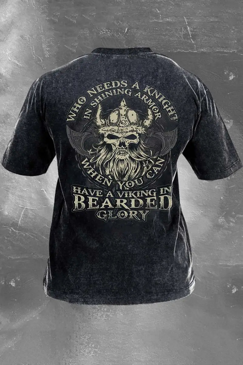 Viking Who Needs A Knight Printed Men's Washed T-Shirt