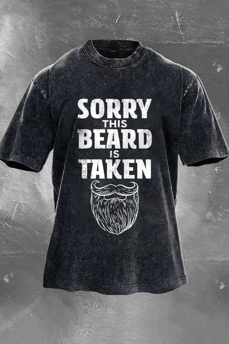 Viking Sorry This Beard Is Taken Printed Men's Washed T-Shirt