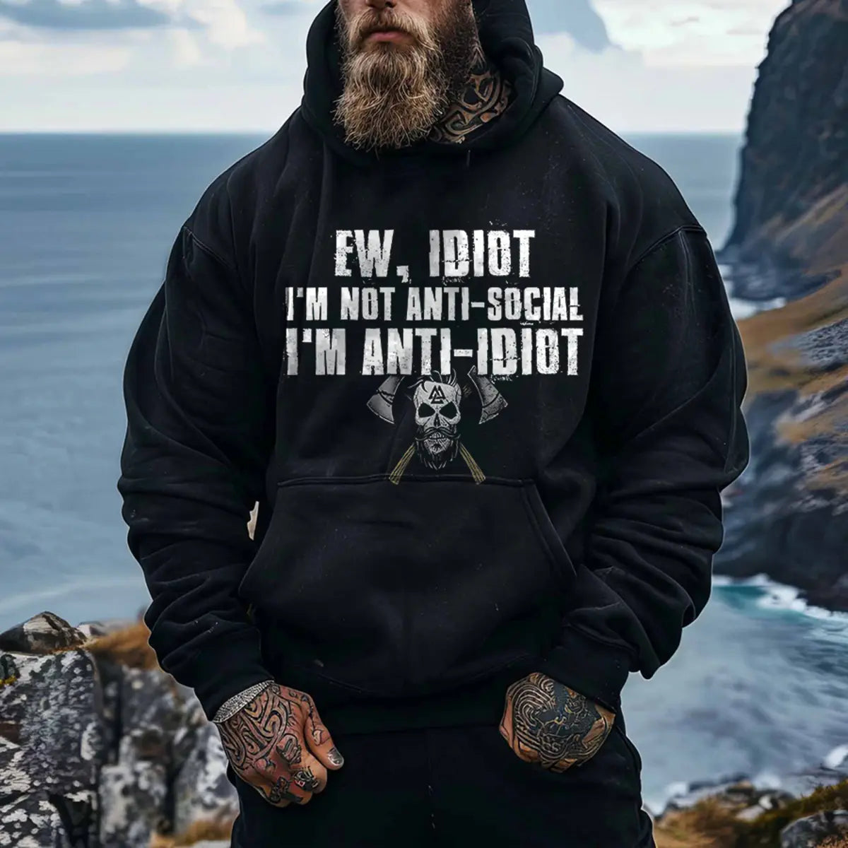 Viking Ew, Idiot I'm Not Anti-social Printed Men's Hoodie