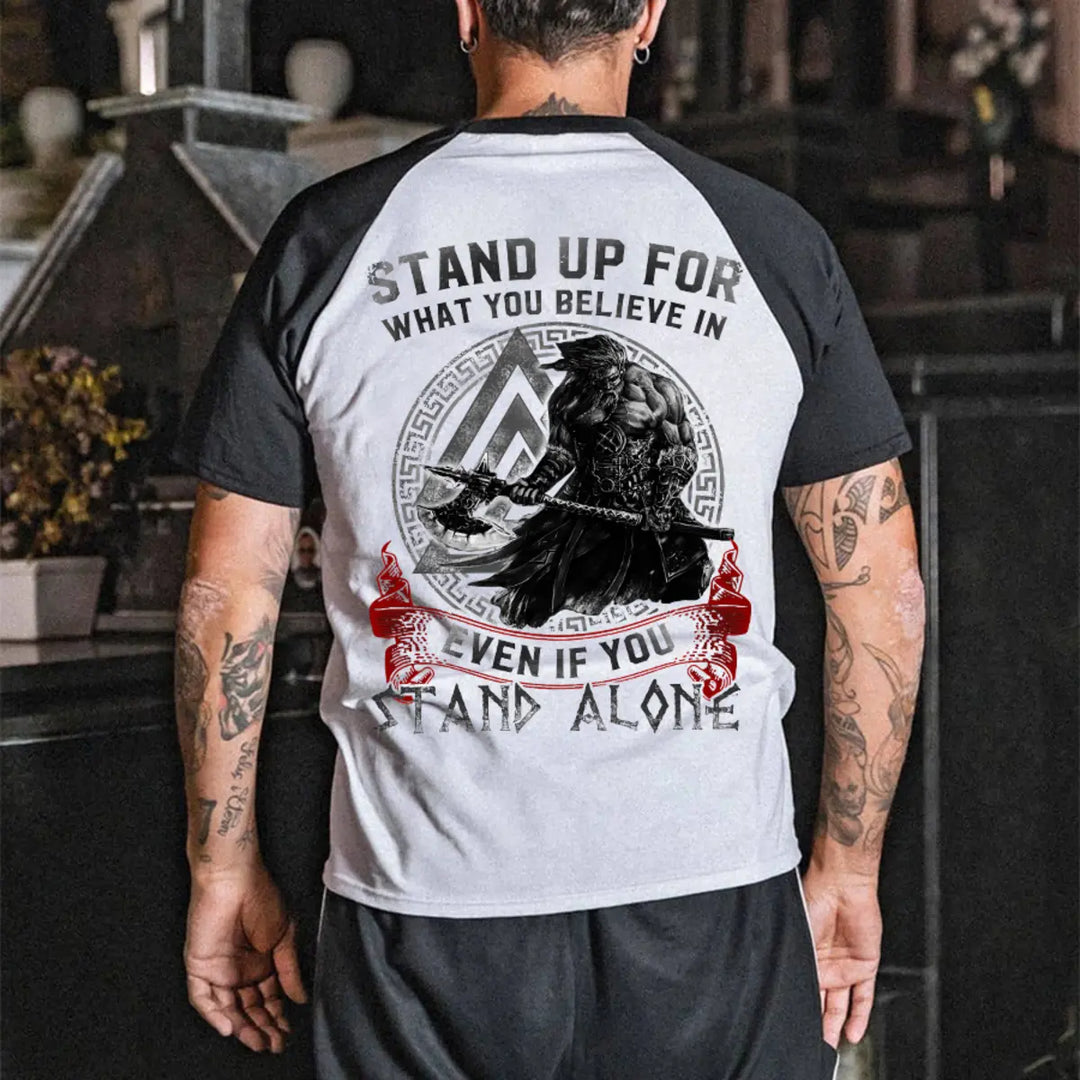 Viking Stand Up For What You Believe In Color Block Printed Men's T-shirt