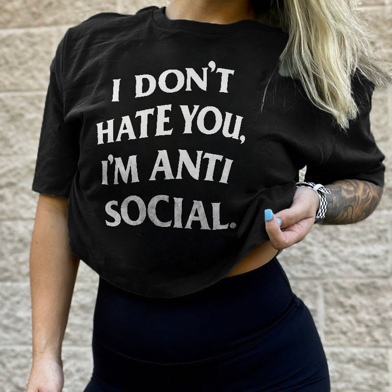 I Don't Hate You I'm Anti Social Printed Women 's T-shirt