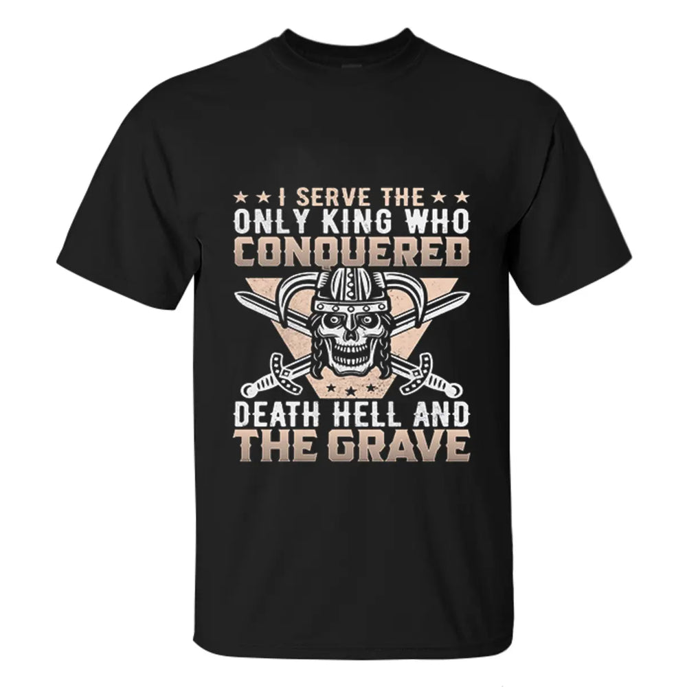 Viking I Serve The Only King Who Conquered Death Hell Printed Men's T-shirt
