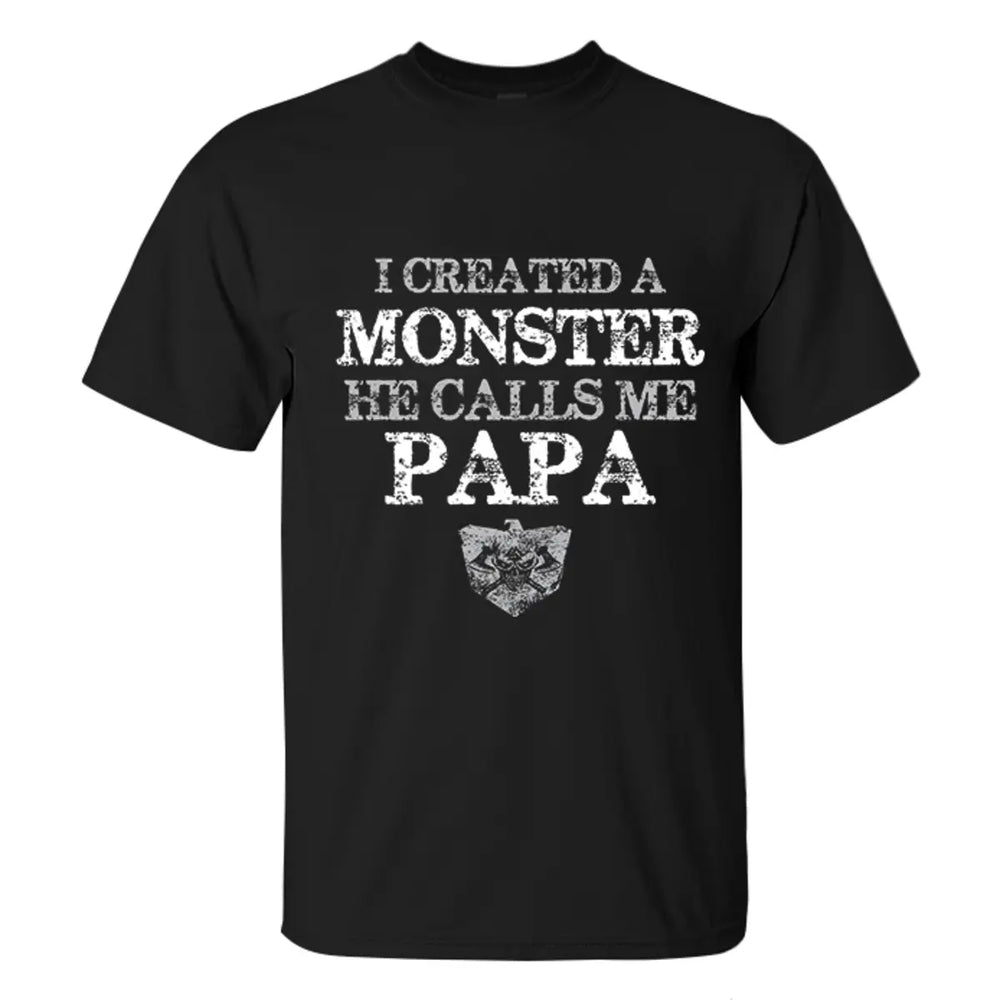 Viking I Created A Monster He Calls Me Papa Printed Men's T-shirt